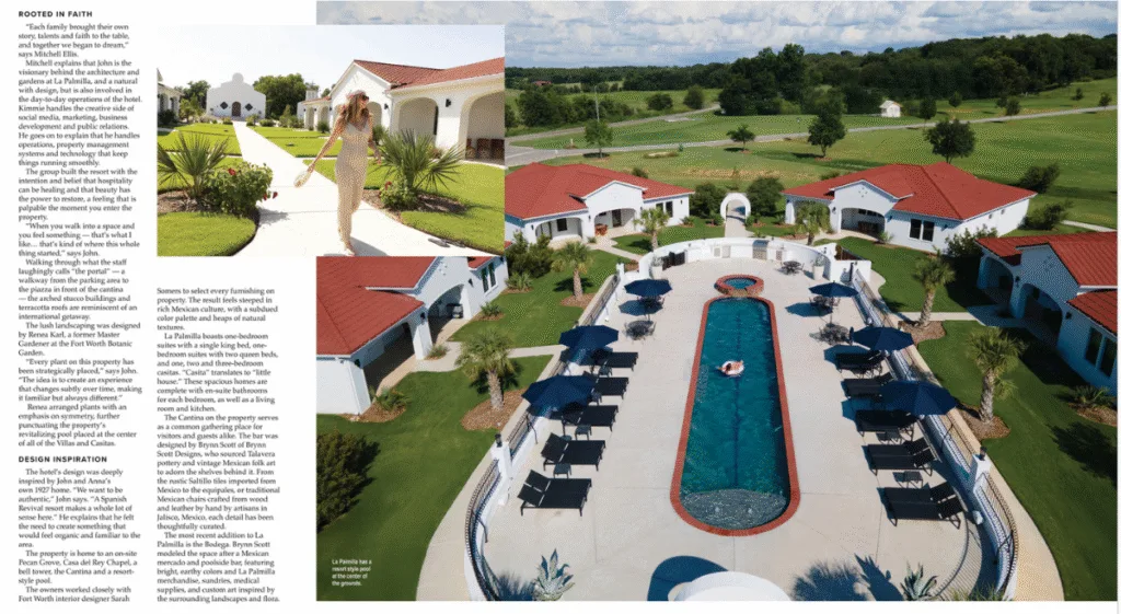 Discover a hidden gem nestled in the heart of Glen Rose, Texas – La Palmilla, a boutique resort and garden retreat center that transcends the ordinary. With a prime location less than an hour’s drive from both the vibrant Dallas and Fort Worth markets, La Palmilla beckons to those seeking a luxurious escape amidst the serene beauty of Spanish Colonial-inspired architecture and lush oasis landscaping. We utilize only the best non-toxic and fragrance-free cleaning products and practices, making sure your stay is comfortable and clean.